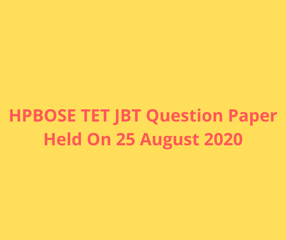 ||HPBOSE TET JBT Question Paper Held On 25 August 2020||HPBOSE TET JBT Previous Year Question Paper Held On 25 August 2020||