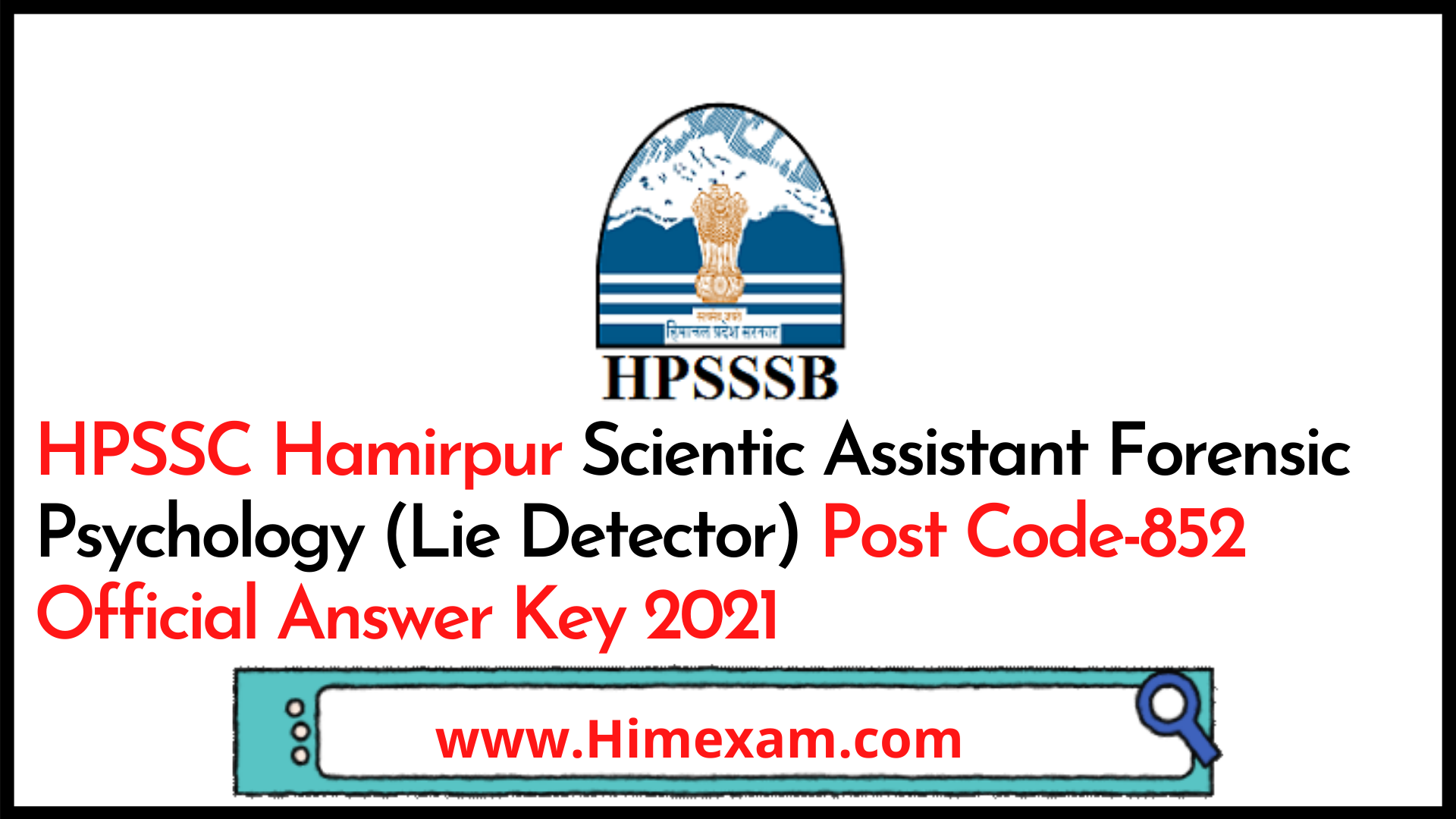 ||HPSSC Hamirpur Scientic Assistant Forensic Psychology (Lie Detector) Post Code-852 Official Answer Key 2021|HPSSSB Hamirpur Scientic Assistant Forensic Psychology (Lie Detector) Post Code-852 Official Answer Key 2021||