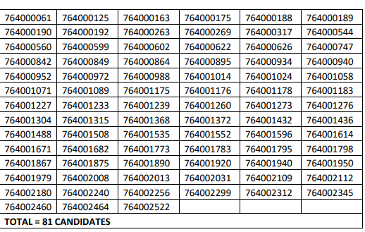 Himachal Pradesh Staff Selection Commission today declared the result of Written Objective Type Screening Test for the recruitment of 04 posts {Gen (UR)-03 & EWS-01 } of Junior Scale Stenographer (on contract basis) Post Code: 764 held on 04.10.20 as per the award list and ratio approved (1:20) by the Hon’ble Commission. The requisition to fill up these posts was received from the Director of Prosecution, HP Shimla-9 and advertised vide advertisement No. 35-3/2019 dated 28.12.2019 and addendum dated 22.07.20. In response to this advertisement, 2598 applications were received out of which 2424 applications were provisionally admitted. The Written Objective Type Screening Test was held on 04.10.2020 in which 1092 candidates appeared and 1332 candidates remained absent. Out of total 1092 candidates appeared, the following 81 candidates have been provisionally shortlisted for further selection process