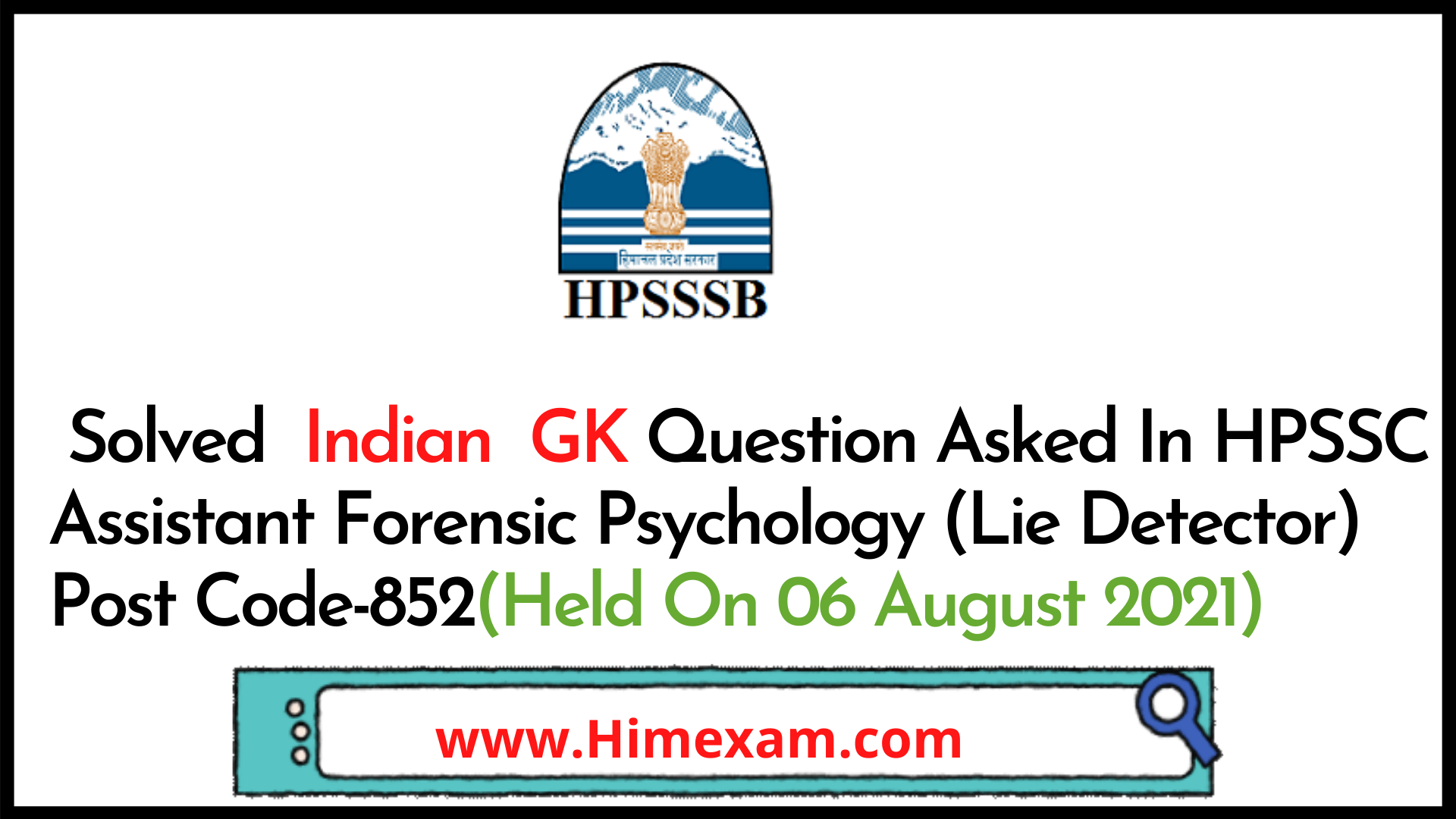 👉Solved HP GK Question Asked In HPSSC Assistant Forensic Psychology (Lie Detector) Post Code-852